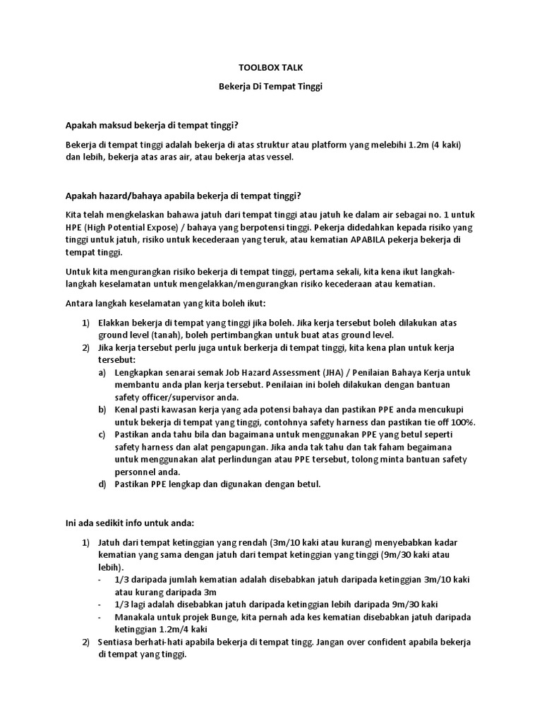 Garis Panduan Bekerja Di Tempat Tinggi Pdf Free Download from docplayer.net Serikat buruh/serikat pekerja adalah kata yang akrab didengar pekerja indonesia. Beberapa hal yang bisa dilakukan melalui pengendalian rekayasa / teknik. Pekerja tipe optimistis adalah orang yang menyukai bekerja di perusahaanya dan percaya akan budaya perusahaan. Baik di kantor dengan target kerja yang tinggi maupun di restoran dengan tamu yang terus berganti, seseorang yang ingin belajar cara bernegosiasi agar bisa diterima bekerja harus memiliki ramuan. Pada tahun 2011, bekerja sama dengan disnaker kabupaten indramayu, pelatihan safetyman pun diadakan. Inggris bisa menjadi tempat yang sangat mahal untuk tinggal, terutama di london, di mana harga sewa untuk tempat tinggal sangat tinggi. Bahaya kebakaran kecelakaan lalu lintas menuju dan dari tempat kerja. Jika jadwal tidur pekerja keluar dari alur, maka siklus tidur dan bangun.